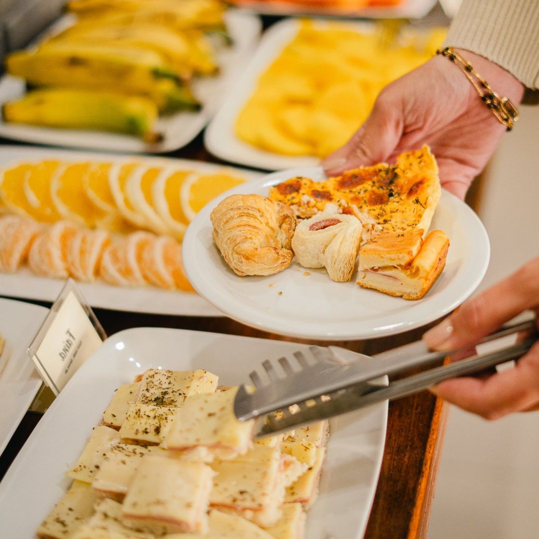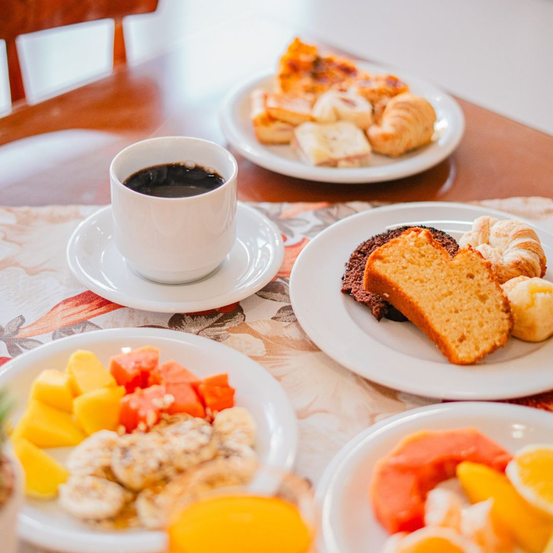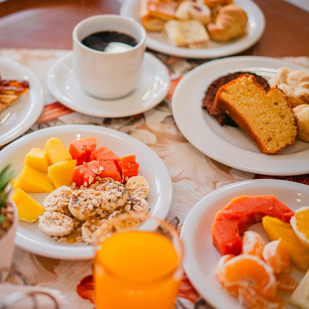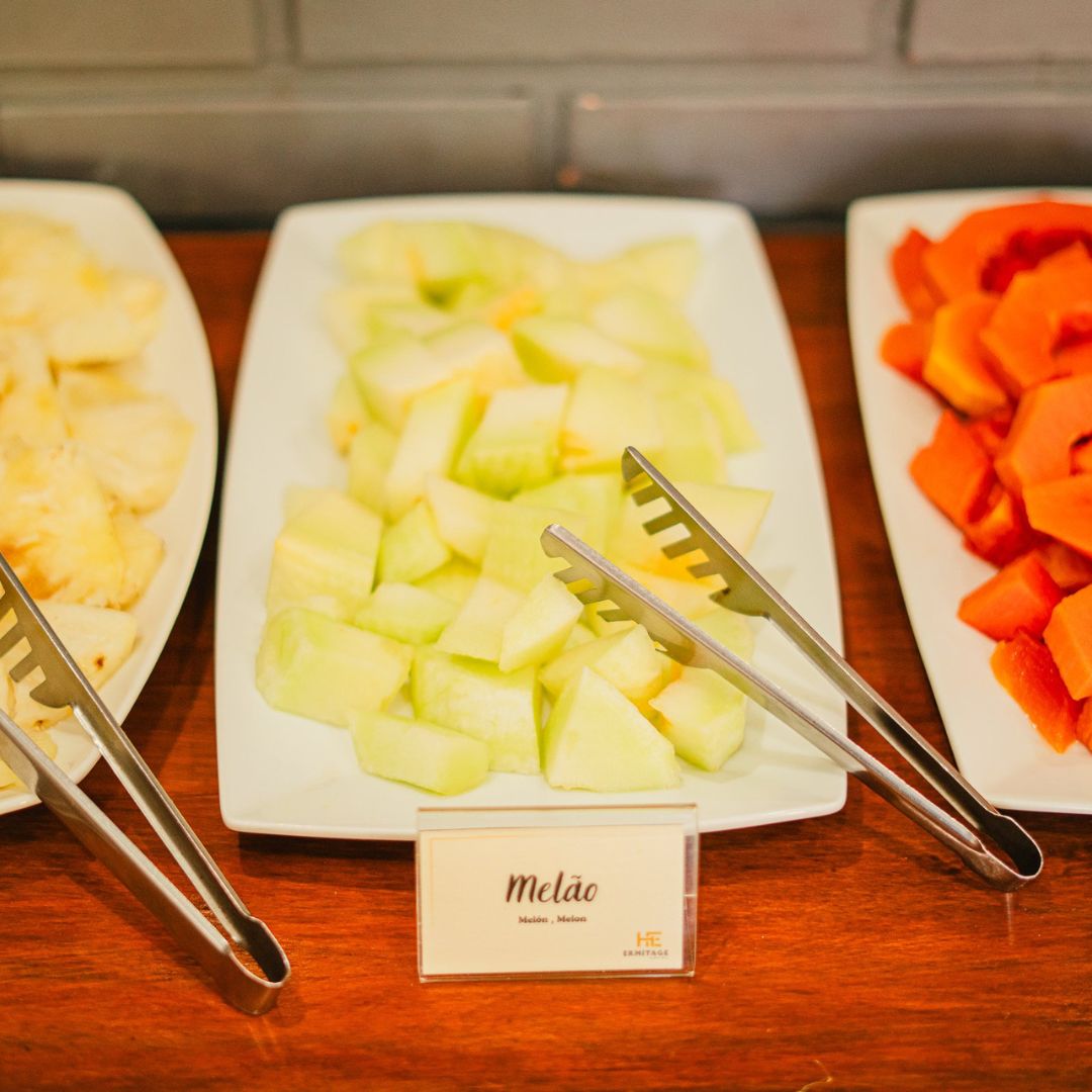 Desfrute de um despertar inesquecível no Hotel Ermitage com nosso buffet completo, que reúne o frescor das frutas e do suco natural de laranja ao aroma do café passado. Nossa seleção artesanal inclui pães variados, croissants, pão de queijo, ovos mexidos, tortas salgadas e iogurte, além de bolos caseiros com e sem cobertura, garantindo uma refeição acolhedora e saborosa em cada detalhe.