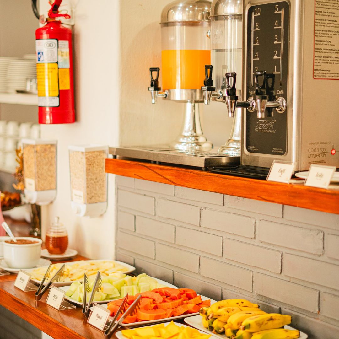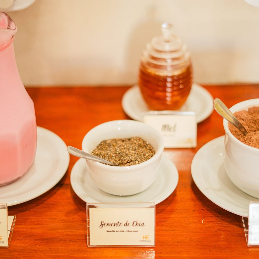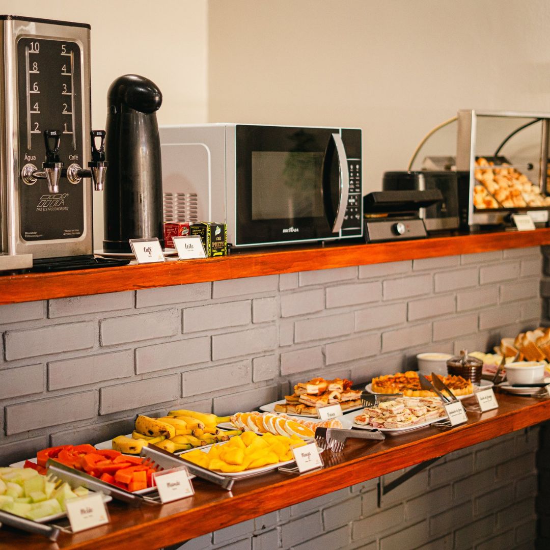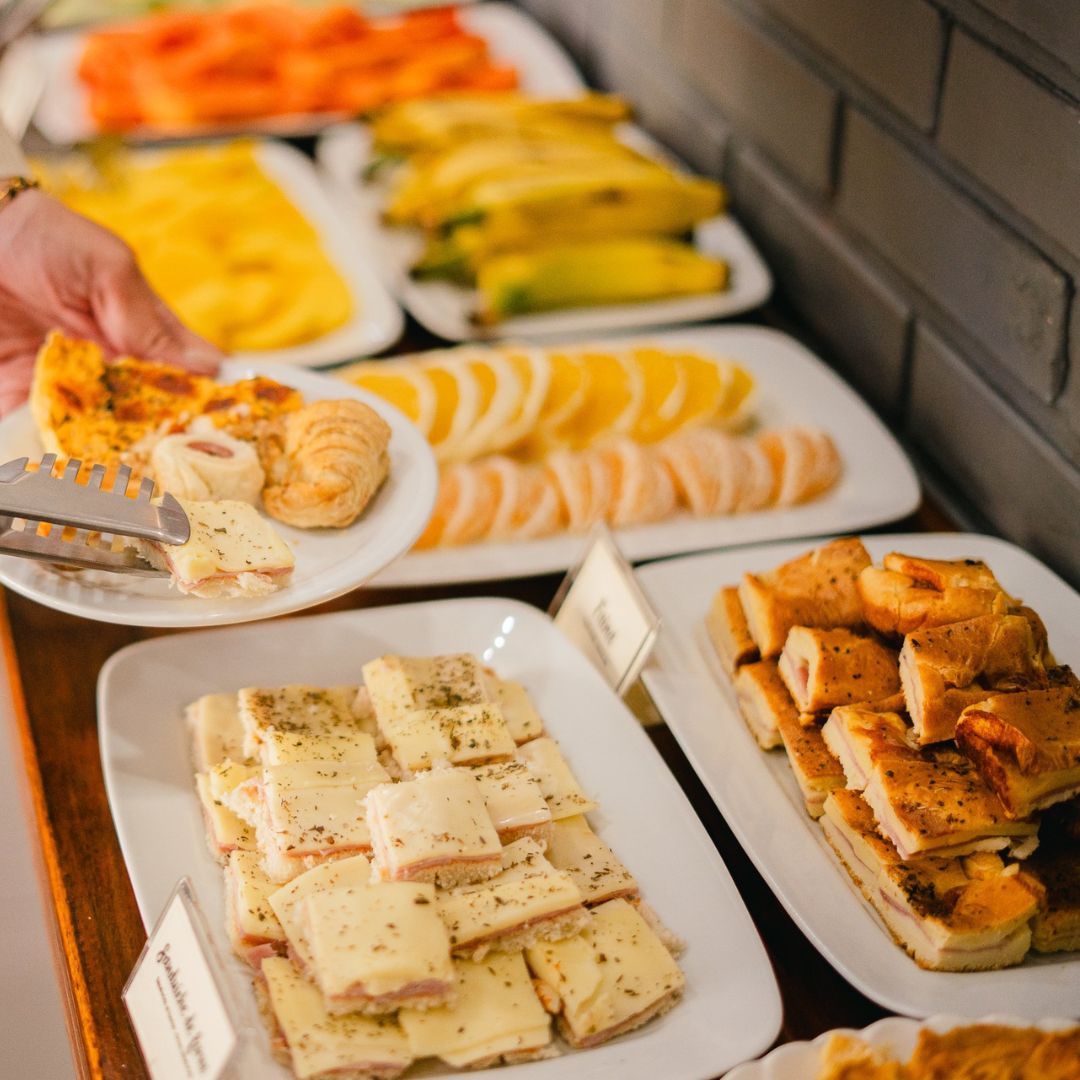 Desfrute de um despertar inesquecível no Hotel Ermitage com nosso buffet completo, que reúne o frescor das frutas e do suco natural de laranja ao aroma do café passado. Nossa seleção artesanal inclui pães variados, croissants, pão de queijo, ovos mexidos, tortas salgadas e iogurte, além de bolos caseiros com e sem cobertura, garantindo uma refeição acolhedora e saborosa em cada detalhe.