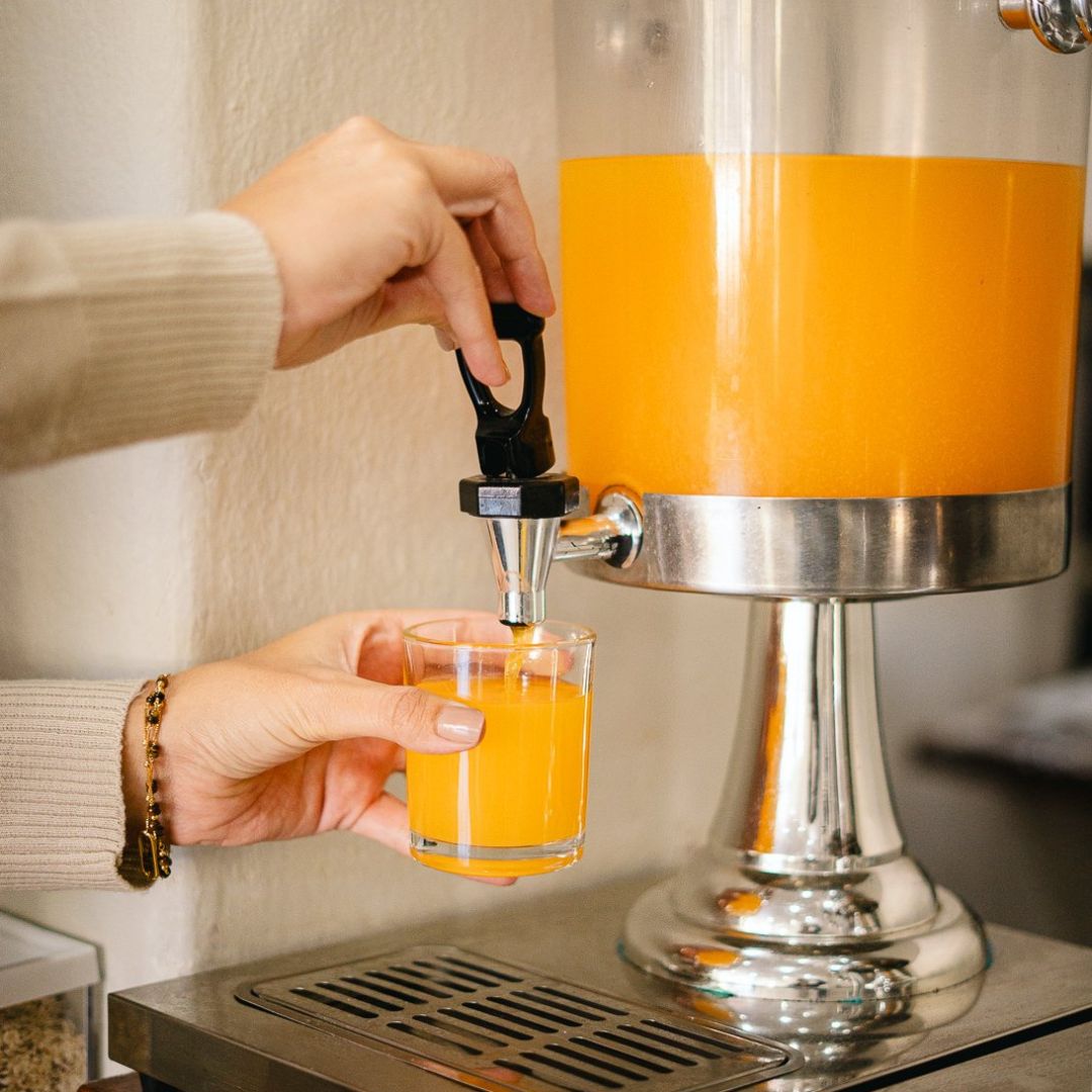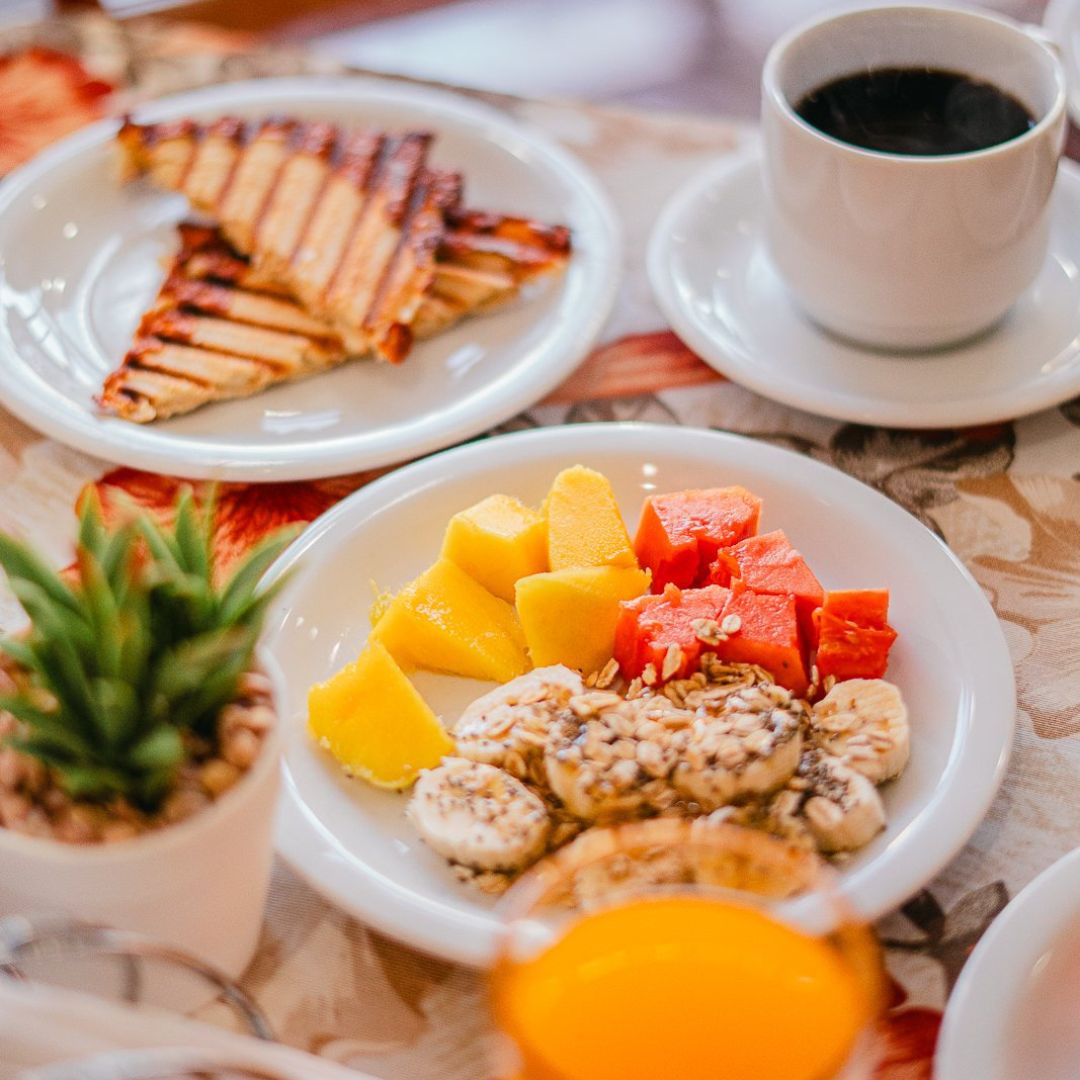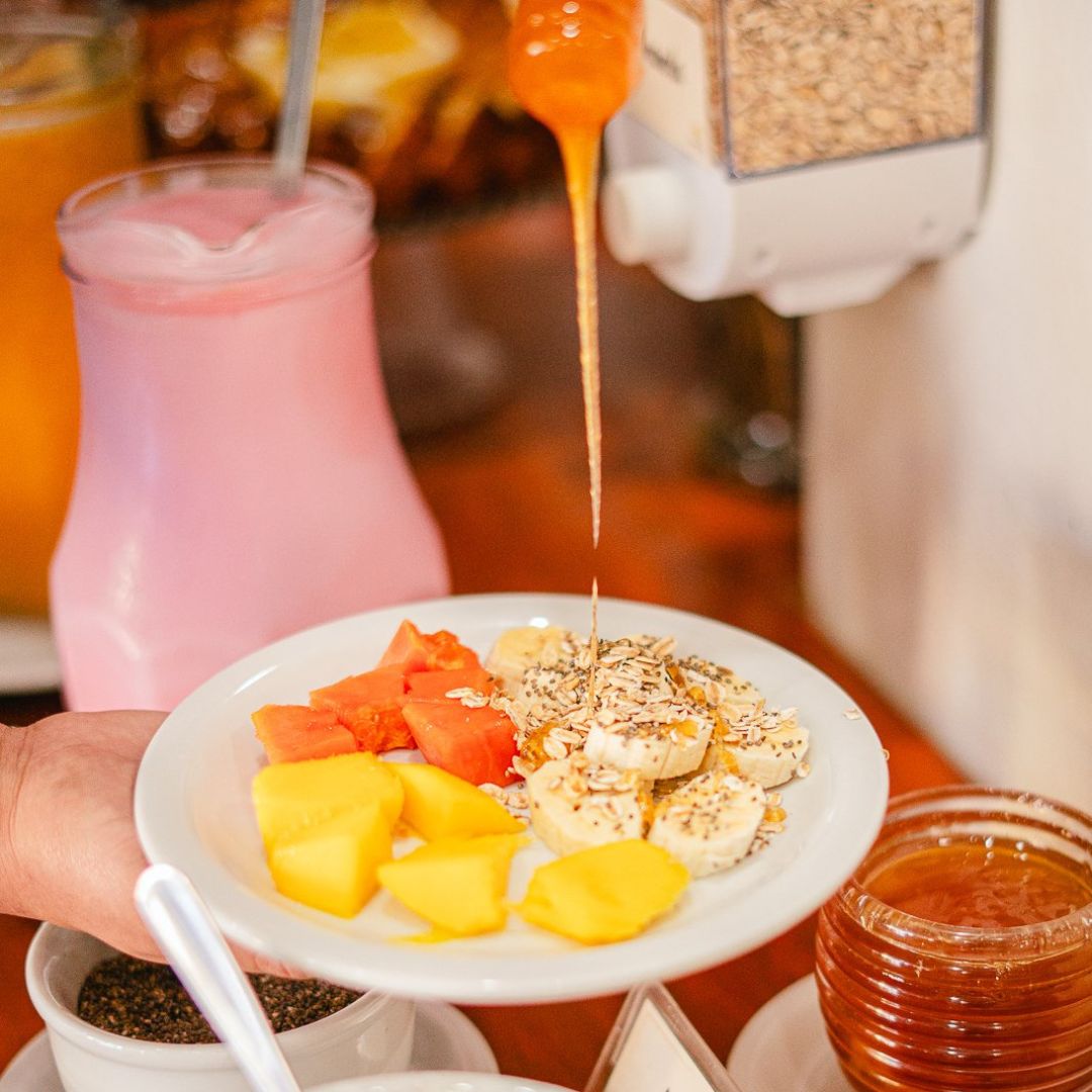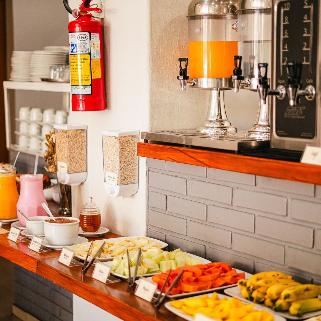 Desfrute de um despertar inesquecível no Hotel Ermitage com nosso buffet completo, que reúne o frescor das frutas e do suco natural de laranja ao aroma do café passado. Nossa seleção artesanal inclui pães variados, croissants, pão de queijo, ovos mexidos, tortas salgadas e iogurte, além de bolos caseiros com e sem cobertura, garantindo uma refeição acolhedora e saborosa em cada detalhe.